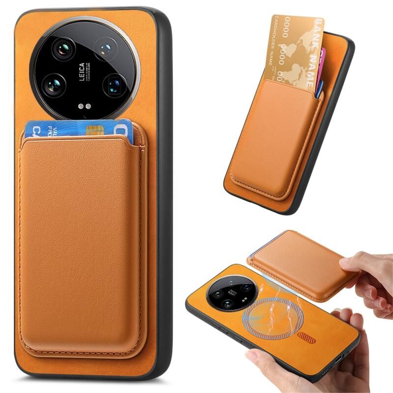 For Xiaomi 14 Ultra Retro Magsafe Card Bag PU Back Cover Phone Case(Yellow)