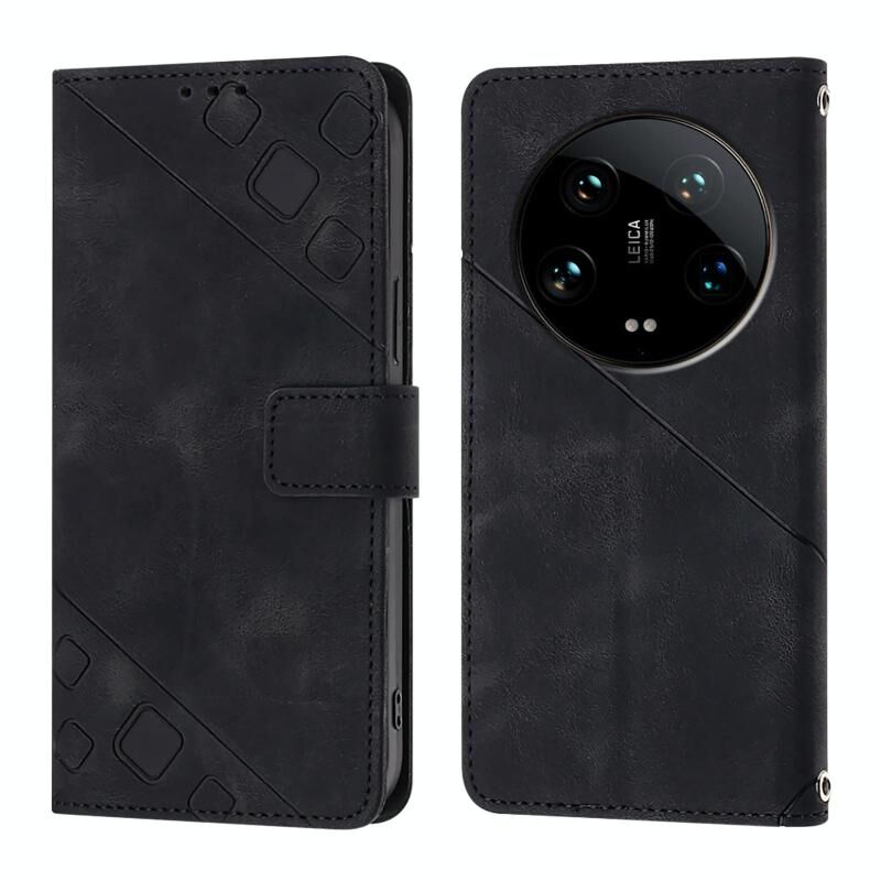 Για το Xiaomi 14 Ultra Skin Feel ανάγλυφη δερμάτινη θήκη τηλεφώνου (μαύρο)