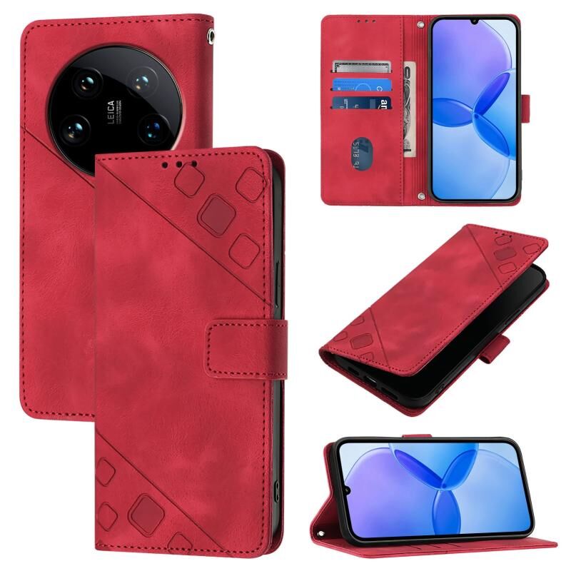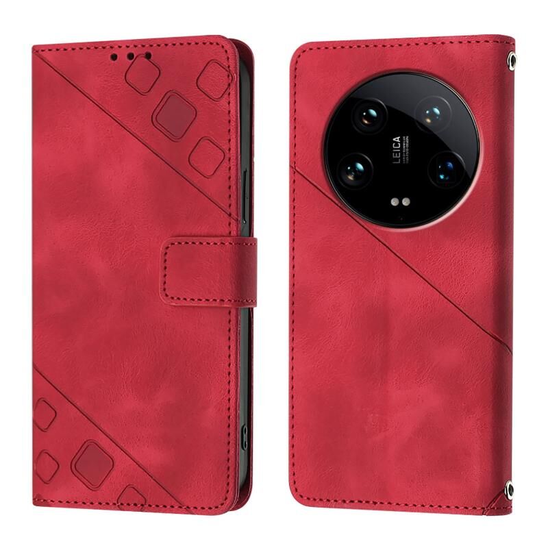 Για το Xiaomi 14 Ultra Skin Feel ανάγλυφη δερμάτινη θήκη τηλεφώνου (κόκκινο)
