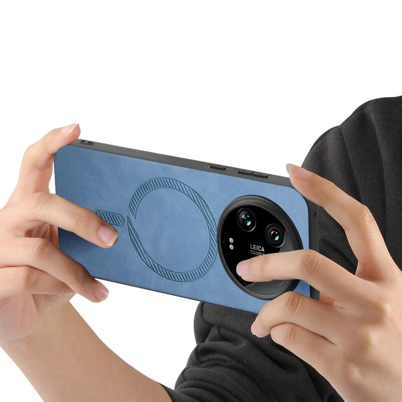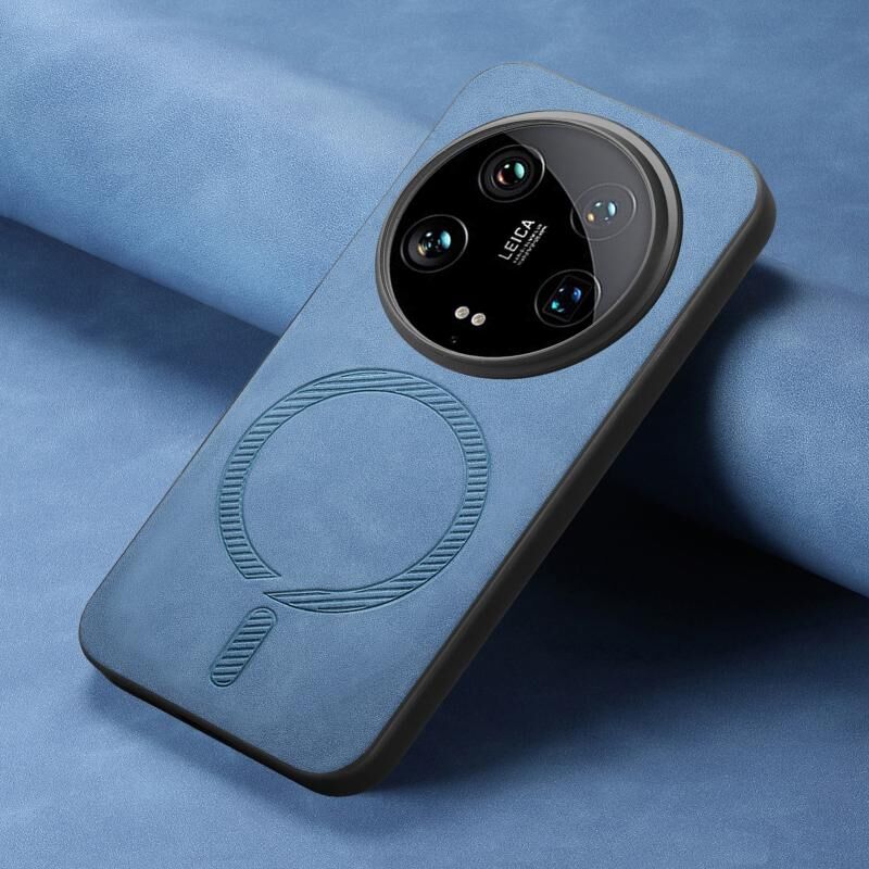 For Xiaomi 14 Ultra Solid Color Retro Magsafe PU Back Cover Phone Case(Blue)