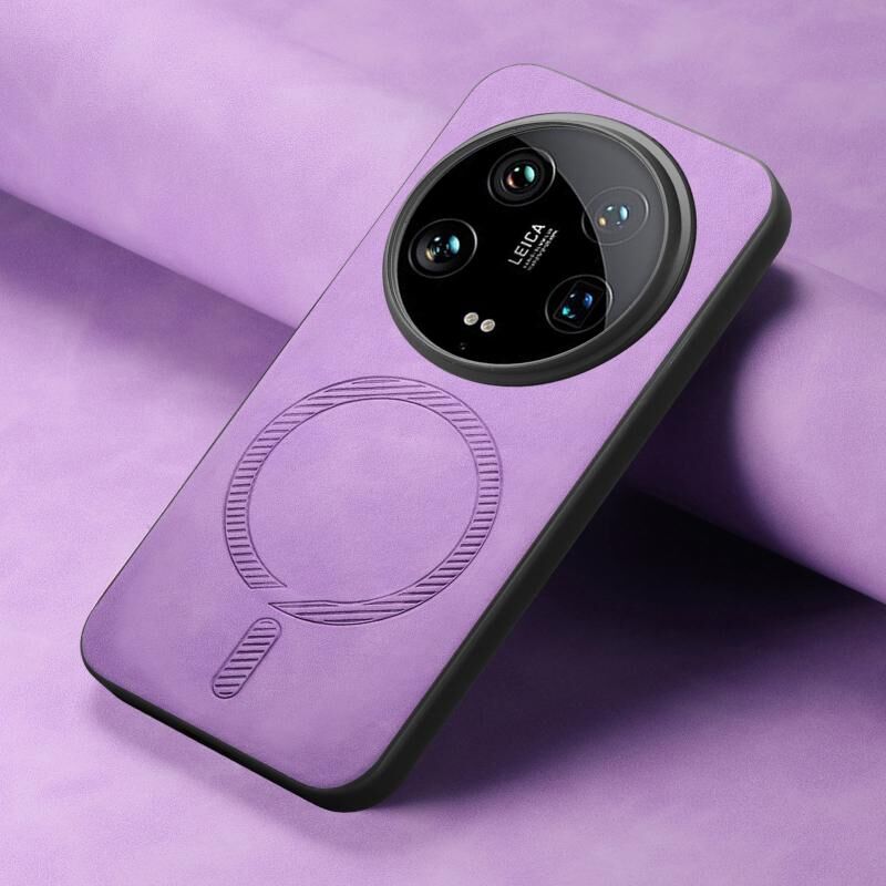 For Xiaomi 14 Ultra Solid Color Retro Magsafe PU Back Cover Phone Case(Purple)