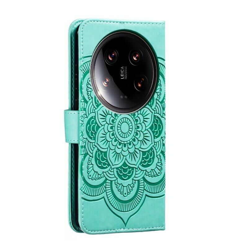 8. Σχεδιασμός ανάγλυφου Sun mandala, Η θήκη είναι κατασκευασμένη από προσεκτικά επιλεγμένο δέρμα που της δίνει μια εκλεπτυσμένη και πολυτελή εμφάνιση και αίσθηση.