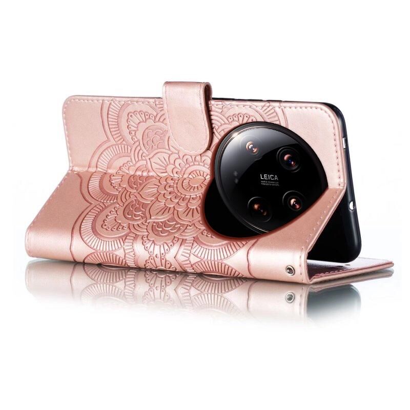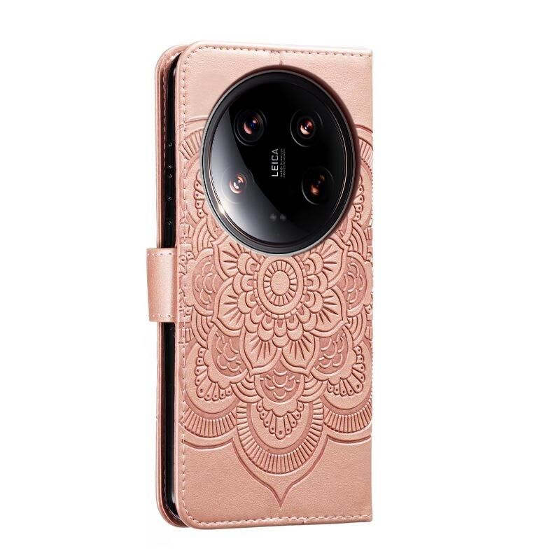 Για Xiaomi 14 Ultra Sun Mandala ανάγλυφο μοτίβο τηλέφωνο δερμάτινη θήκη (Rose Gold)