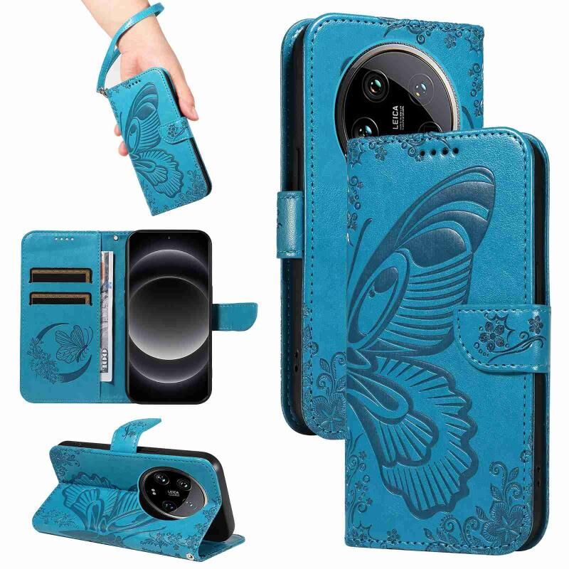 Θήκη τηλεφώνου Xiaomi 14 Ultra με ανάγλυφο δέρμα πεταλούδας Swallowtail (Μπλε)