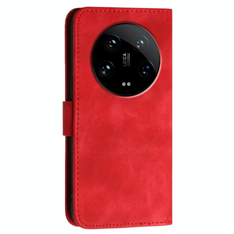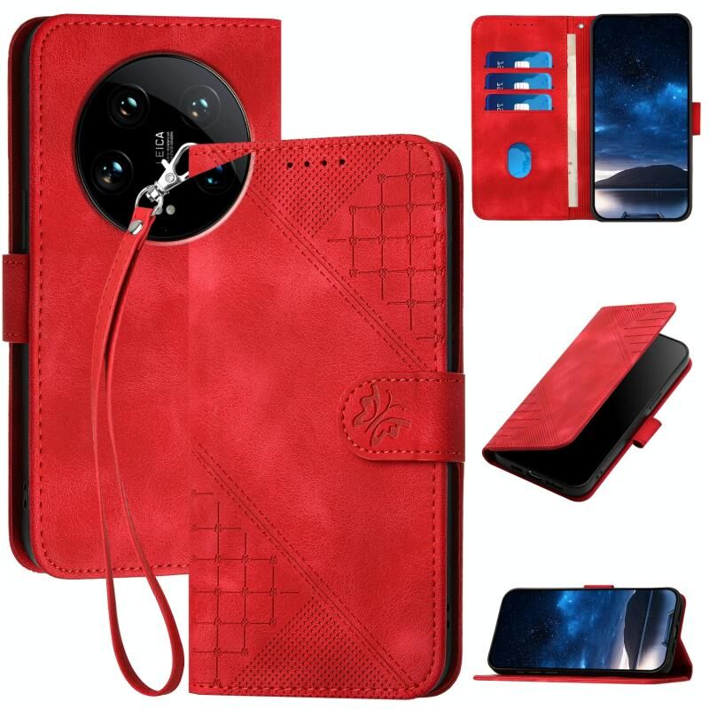 For Xiaomi 14 Ultra YX0080 Grid Butterfly Embossed Pattern Leather Phone Case with Lanyard(Red)