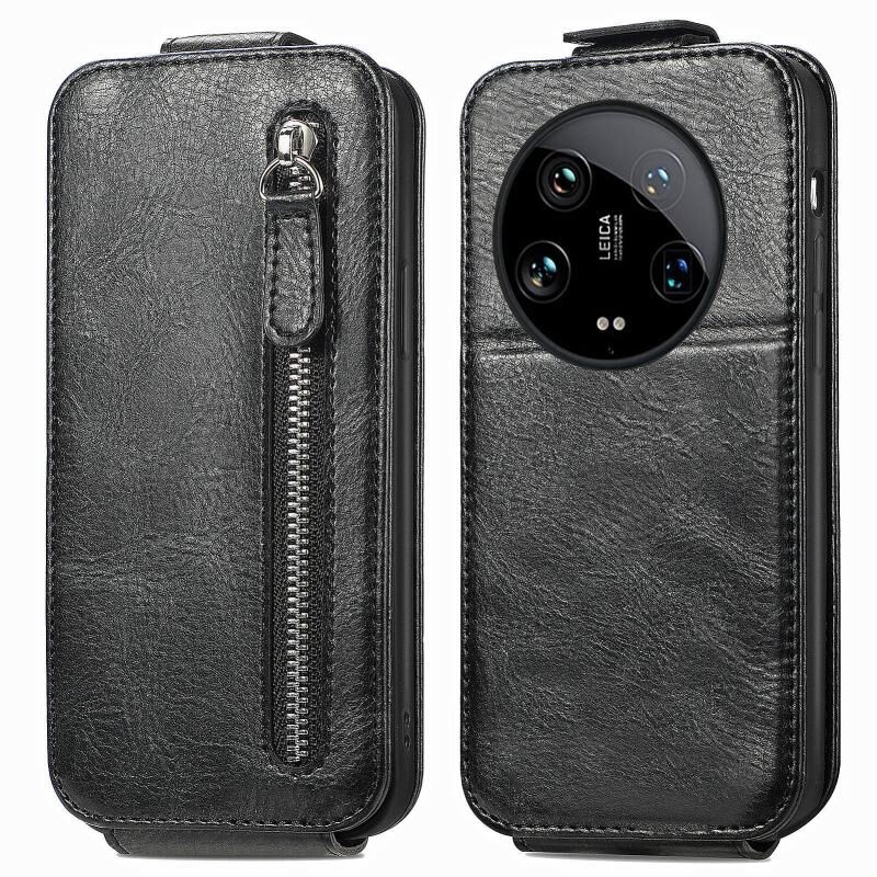 Για Xiaomi 14 Ultra φερμουάρ πορτοφόλι κάθετη Flip δερμάτινη θήκη τηλεφώνου (μαύρο)