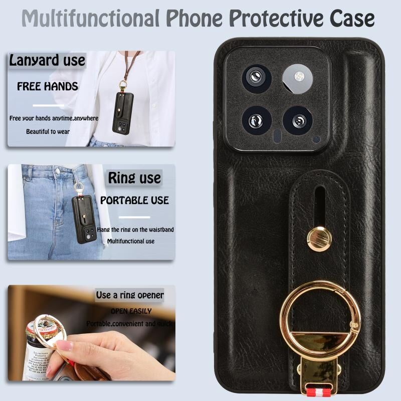 Για Xiaomi 14 Wristband δέρμα πίσω τηλέφωνο υπόθεση (Μαύρο)