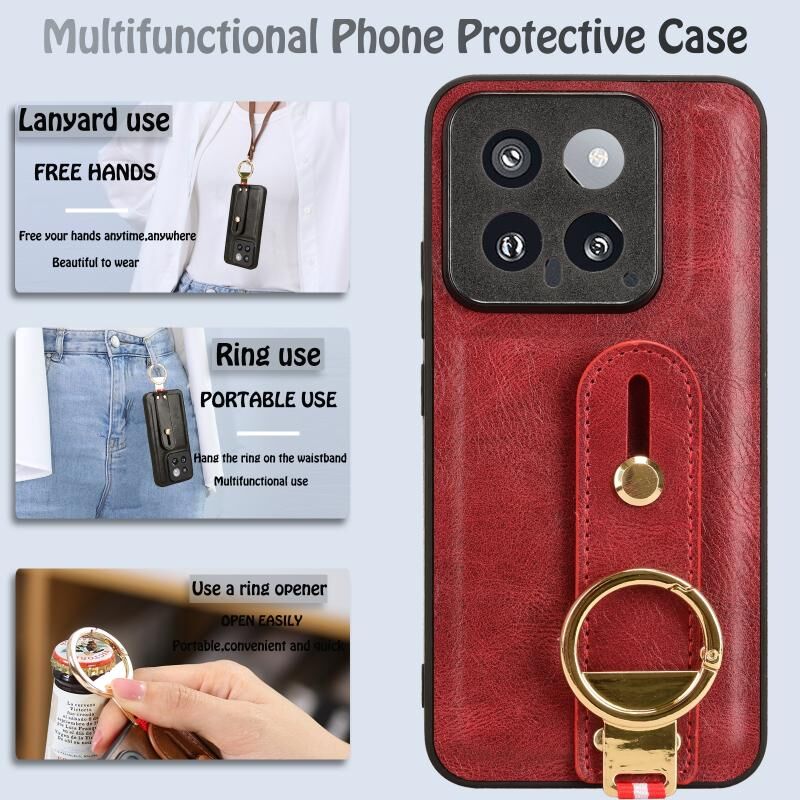 Για Xiaomi 14 Wristband δέρμα πίσω τηλέφωνο υπόθεση (κόκκινο)