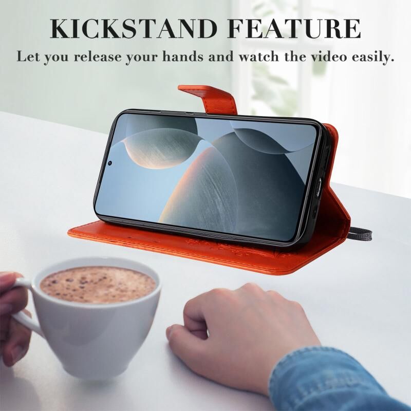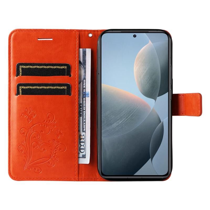 Για Xiaomi 14T 3D πεταλούδα ανάγλυφο μοτίβο Flip υπόθεση τηλεφώνου δέρμα (πορτοκαλί)