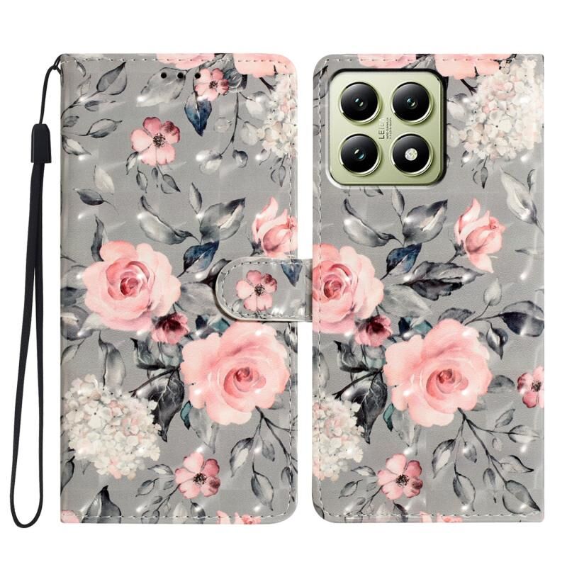 For Xiaomi 14T 3D Pattern Leather Phone Case(Gray Base Flower)