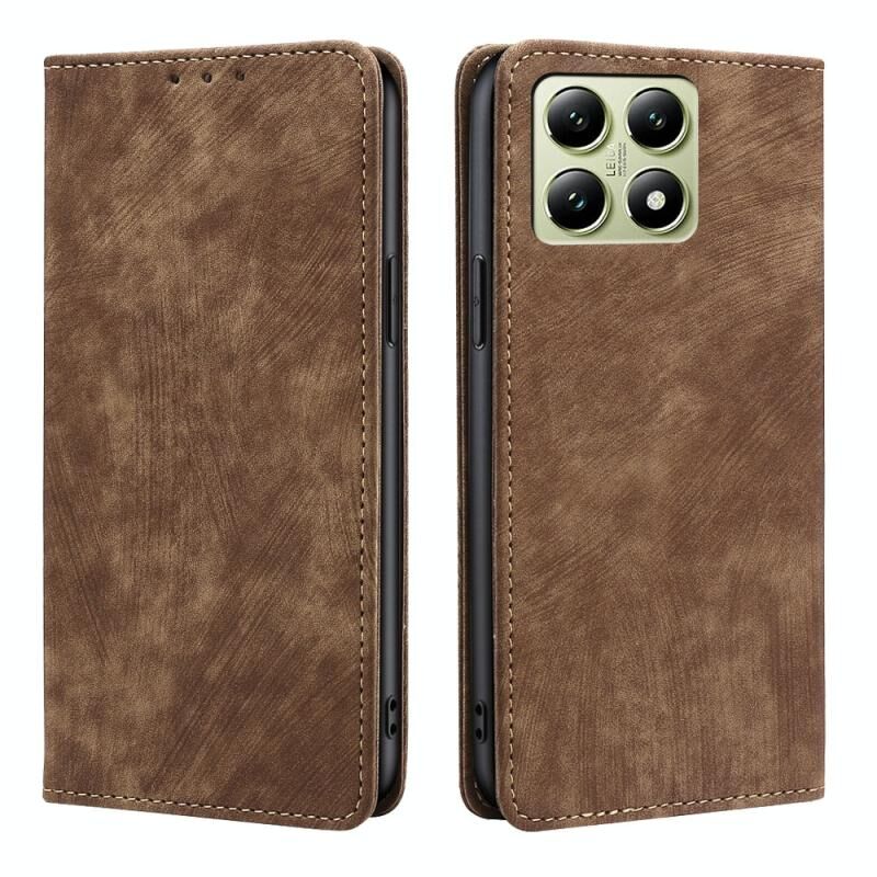 Για Xiaomi 14T 5G RFID Anti-theft Brush Μαγνητική δερμάτινη θήκη τηλεφώνου (καφέ)