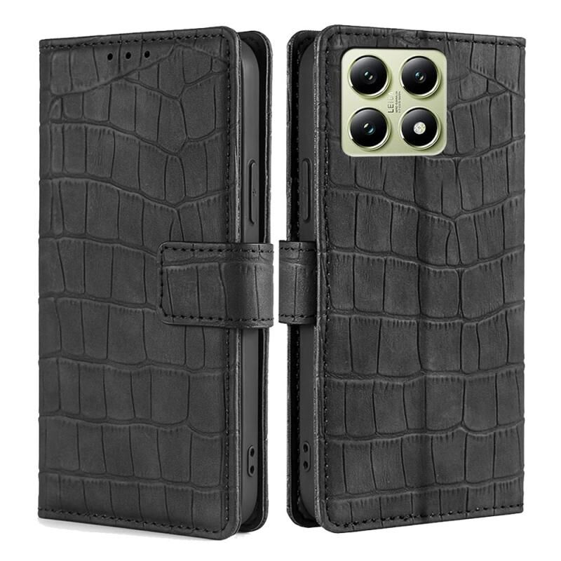 Θήκη τηλεφώνου δερμάτινη με μαγνητικό κούμπωμα και υφή κροκόδειλου για Xiaomi 14T 5G (Μαύρο)