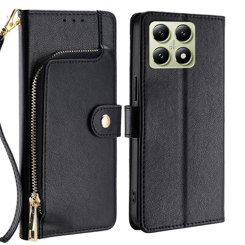 Για Xiaomi 14T 5G φερμουάρ τσάντα δερμάτινη θήκη τηλεφώνου (μαύρο)
