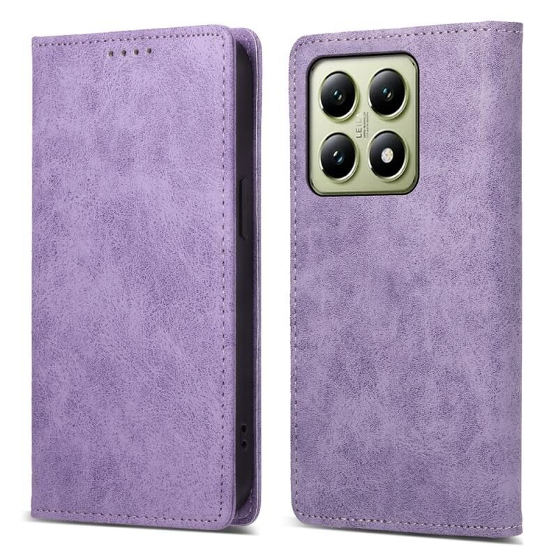 For Xiaomi 14T Business Solid Color Magnetic RFID Leather Phone Case(Purple)