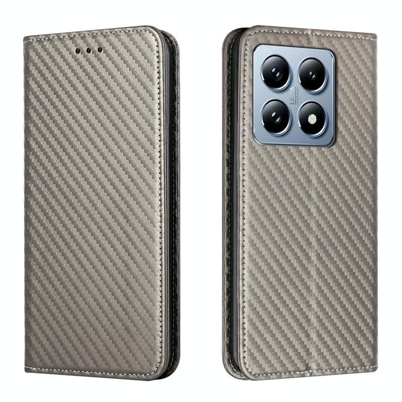 Για Xiaomi 14T Carbon Fiber Texture μαγνητική Flip δέρμα τηλέφωνο υπόθεση (γκρι)