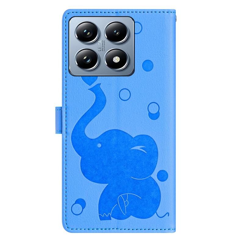 Θήκη τηλεφώνου δερμάτινη με ανάγλυφο σχέδιο καρτούν ελέφαντα για Xiaomi 14T (Μπλε)