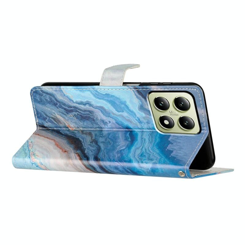 Θήκη τηλεφώνου από δέρμα με έγχρωμο σχέδιο για Xiaomi 14T (Μπλε Πεταλούδα)