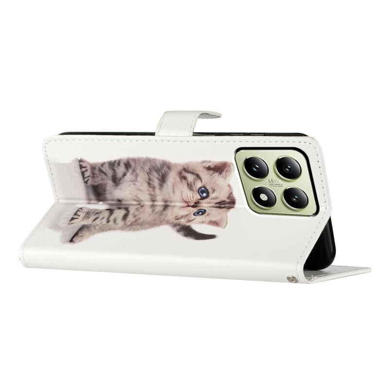 For Xiaomi 14T Colored Drawing Leather Phone Case(Little Tabby Cat)