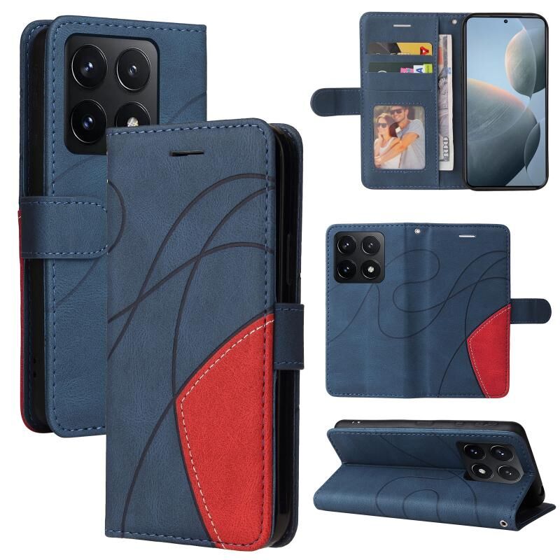 Για Xiaomi 14T Διπλό χρώμα Splicing Flip δέρμα τηλέφωνο υπόθεση (μπλε)