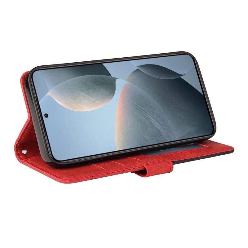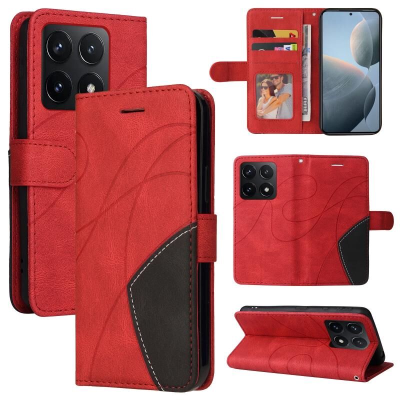 Για Xiaomi 14T Διπλό χρώμα Splicing Flip δέρμα τηλέφωνο υπόθεση (κόκκινο)