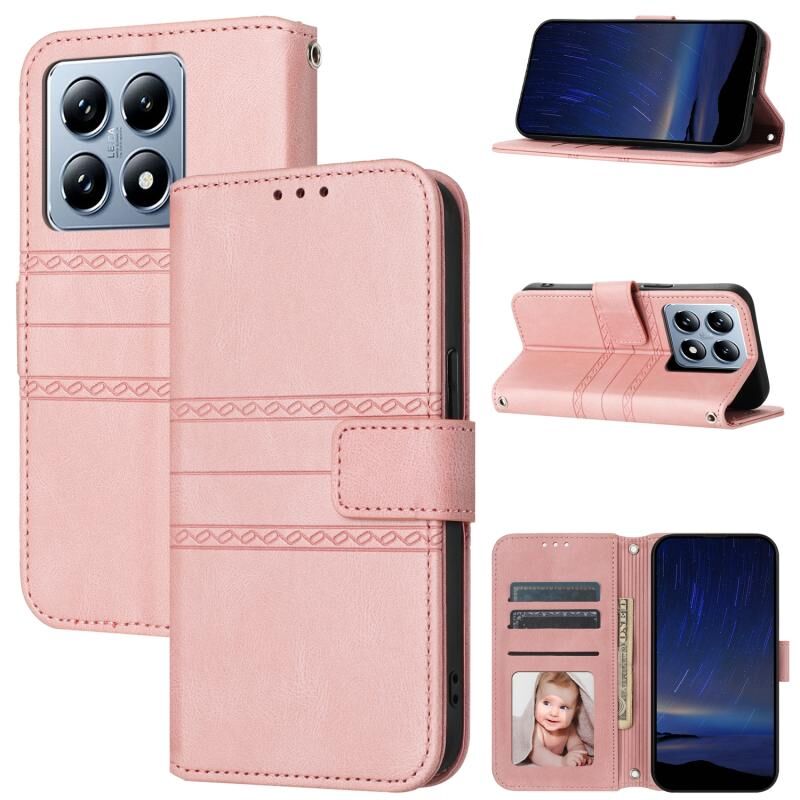 Για Xiaomi 14T ανάγλυφο ρίγες δέρμα δέρμα αίσθηση υπόθεση τηλεφώνου (ροζ)