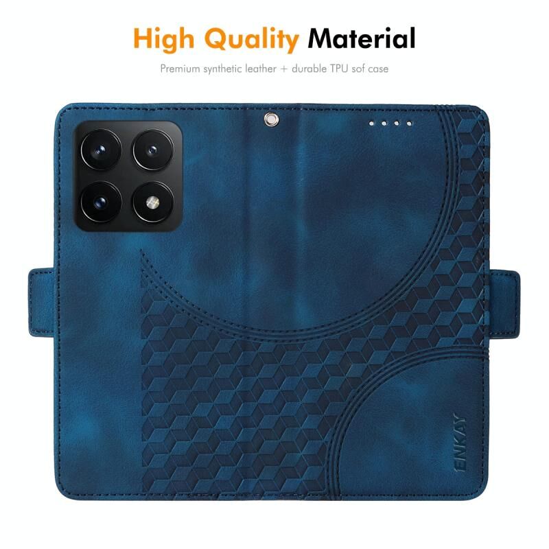 Θήκη κινητού τηλεφώνου Xiaomi 14T ENKAY με ανάγλυφο ρόμβο και δέρμα με αστρικό σχέδιο, με προστατευτική μεμβράνη οθόνης (Μπλε) (ENKAY)