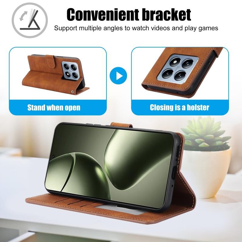 For Xiaomi 14T Fantasy Skin-feel Calfskin Texture Leather Phone Case(Brown)