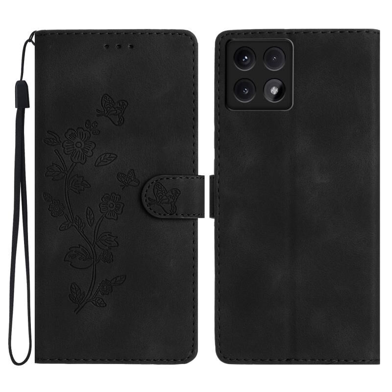 Για Xiaomi 14T λουλούδι πεταλούδα ανάγλυφο μοτίβο δερμάτινη θήκη τηλεφώνου (μαύρο)