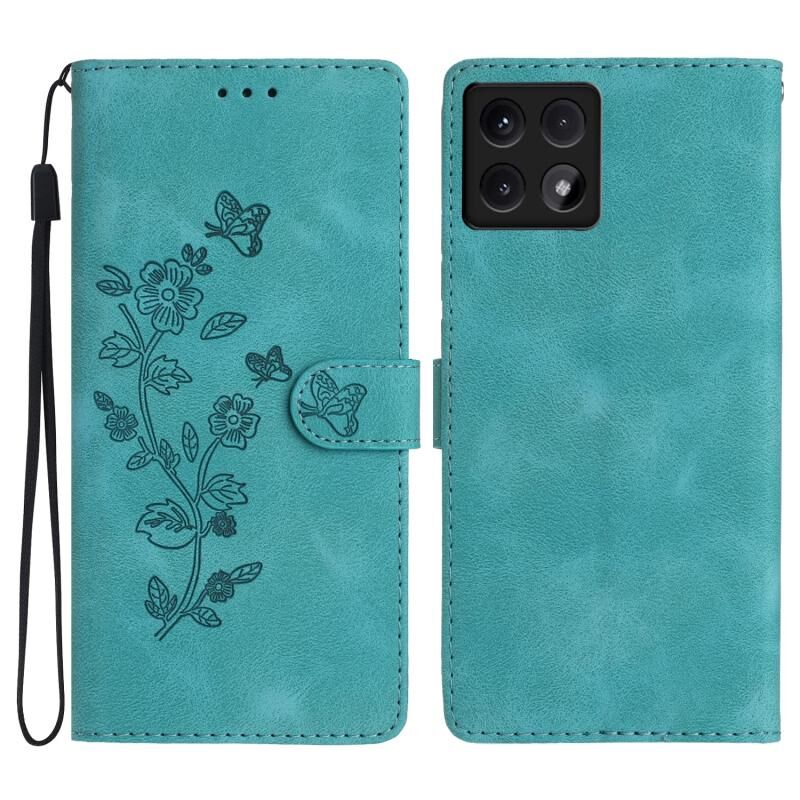 Για Xiaomi 14T λουλούδι πεταλούδα ανάγλυφο μοτίβο δερμάτινη θήκη τηλεφώνου (Sky Blue)
