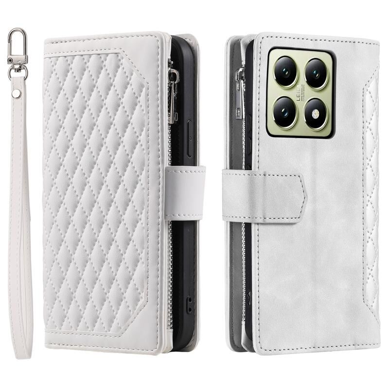 Για Xiaomi 14T Πλέγμα υφή φερμουάρ δερμάτινη θήκη τηλεφώνου με κορδόνι (λευκό)