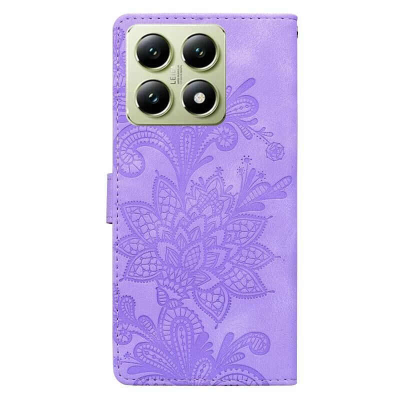 Θήκη τηλεφώνου Xiaomi 14T με δαντελένιο λουλουδάτο ανάγλυφο, μαγνητικό κούμπωμα και λουρί καρπού (Πράσινο)