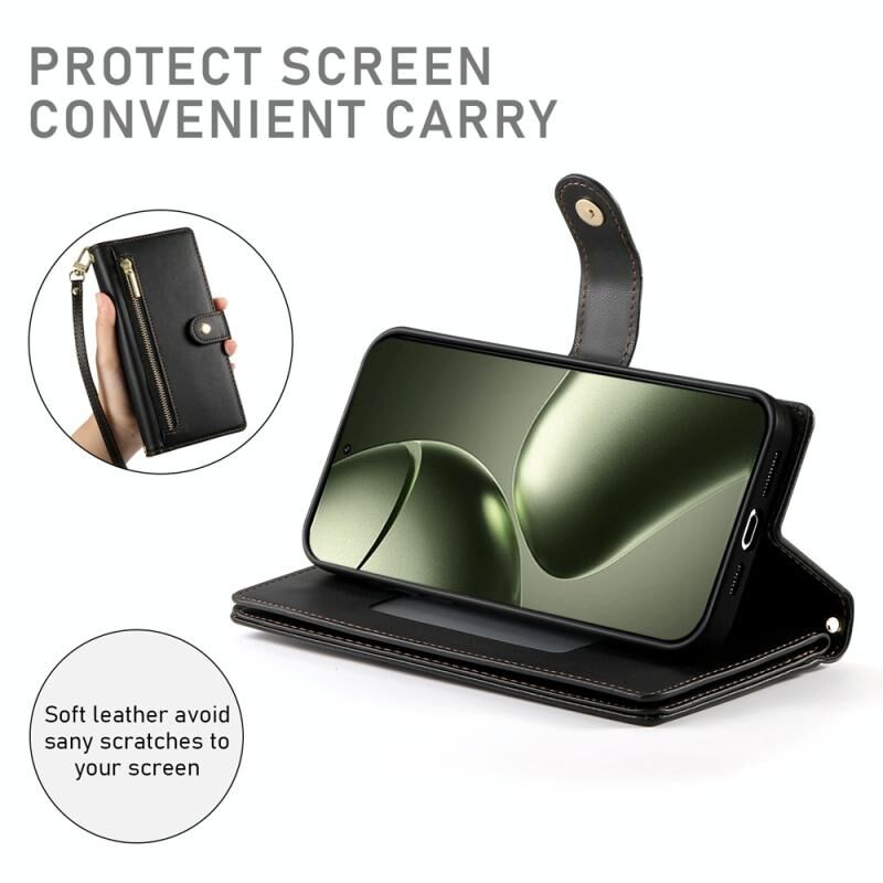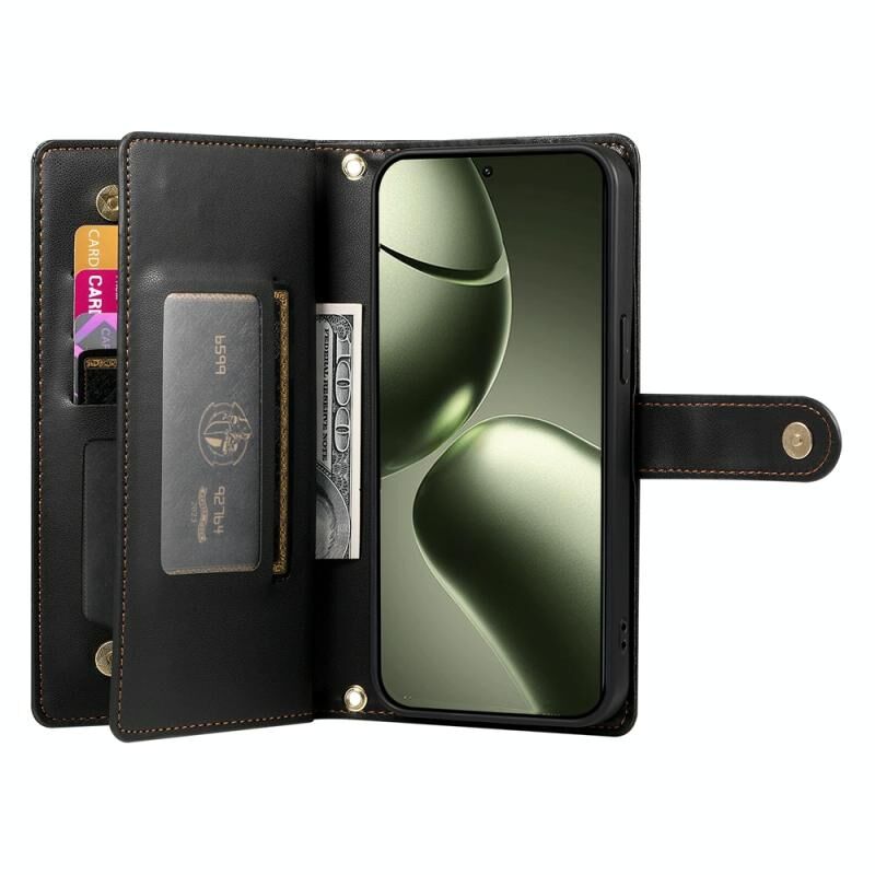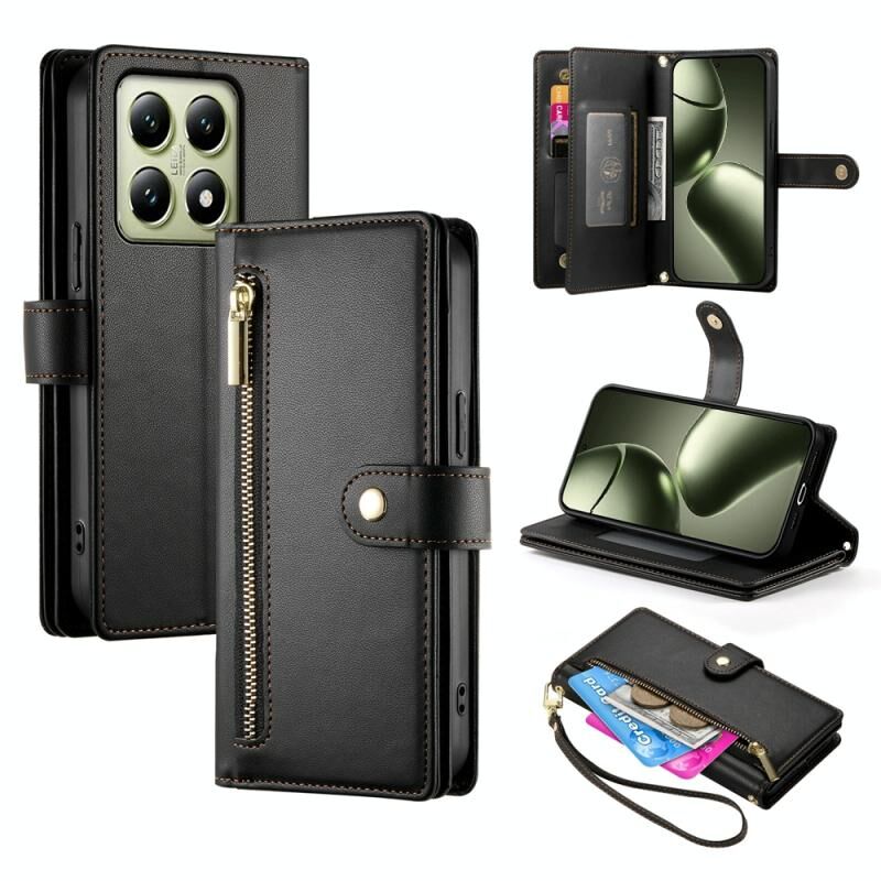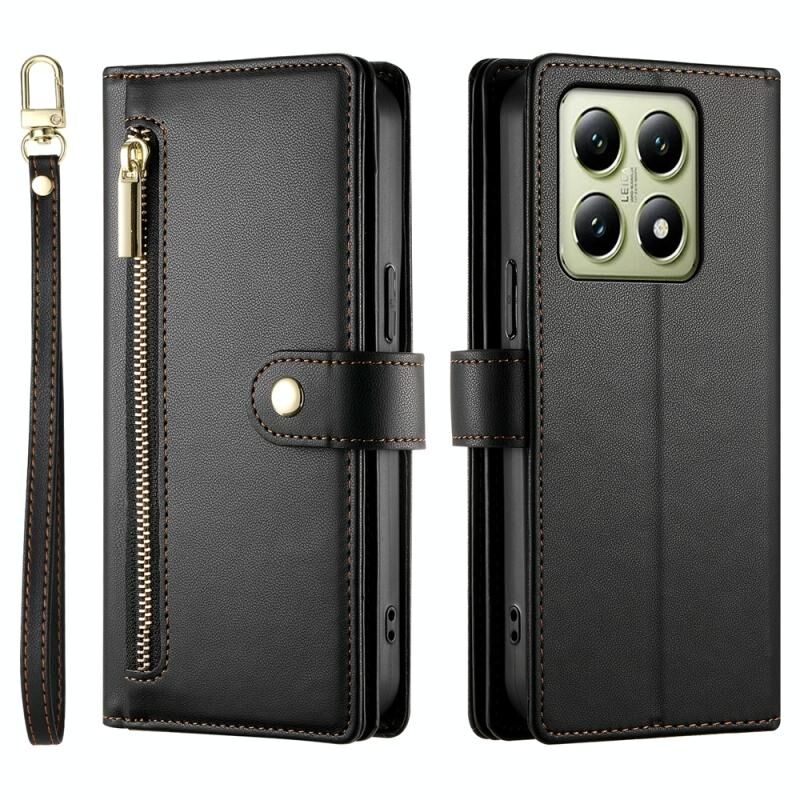 Για Xiaomi 14T Εννέα Card-slot φερμουάρ τσάντα πορτοφόλι δερμάτινη θήκη τηλεφώνου (μαύρο)