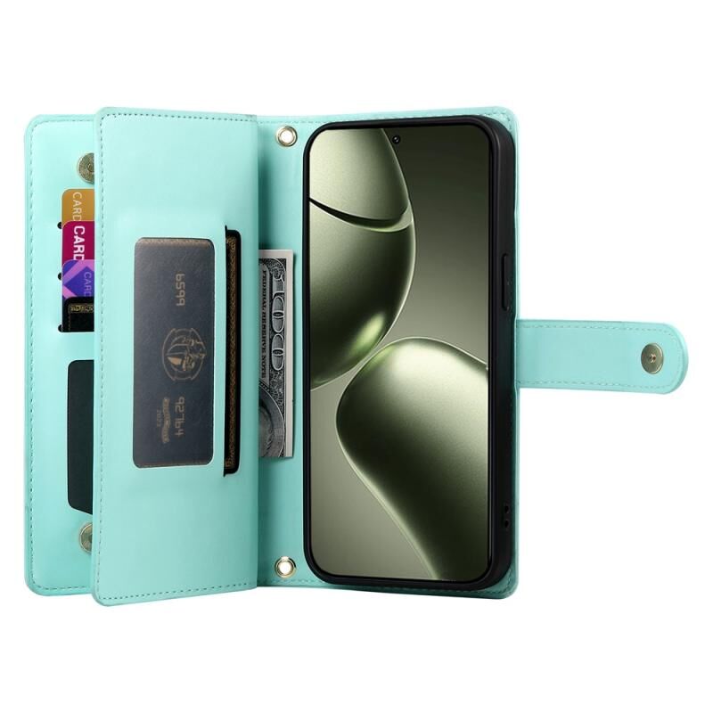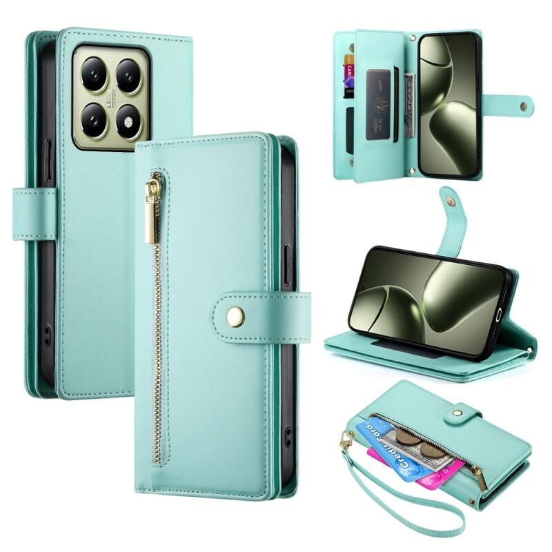 For Xiaomi 14T Nine Card-slot Zipper Wallet Bag Leather Phone Case(Mint Green)