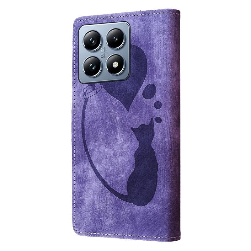 Θήκη τηλεφώνου δερμάτινη με ανάγλυφο σχέδιο καρδιάς και γάτας για Xiaomi 14T (Πορτοκαλί)