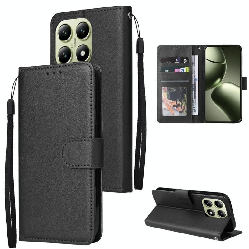 Για Xiaomi 14T Pro 3-Card Slots πολυλειτουργική δερμάτινη θήκη τηλεφώνου (Μαύρο)