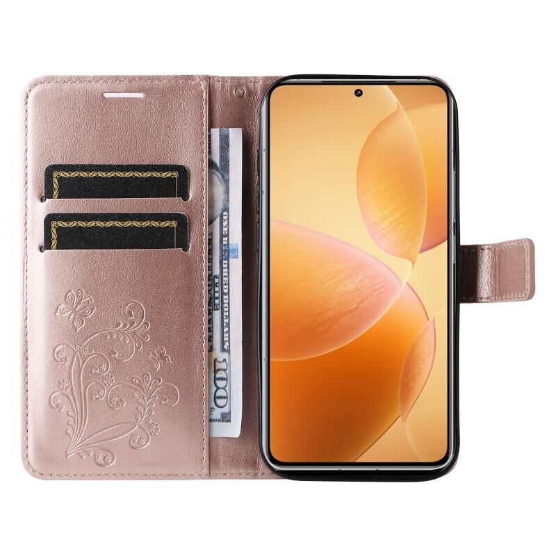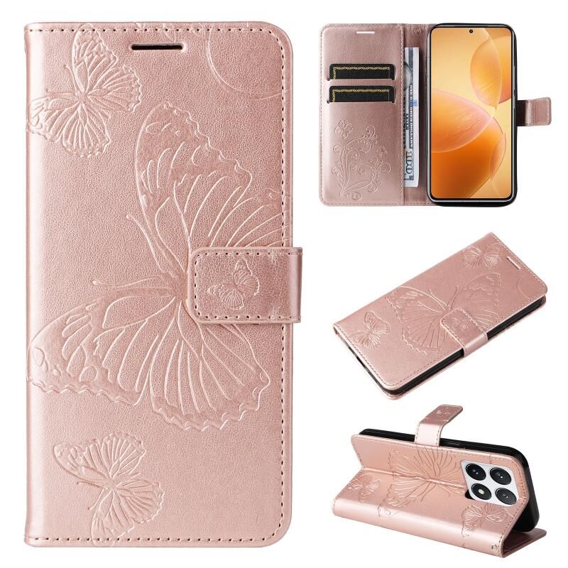 Για Xiaomi 14T Pro 3D πεταλούδα ανάγλυφο μοτίβο Flip υπόθεση τηλεφώνου δέρμα (Rose Gold)