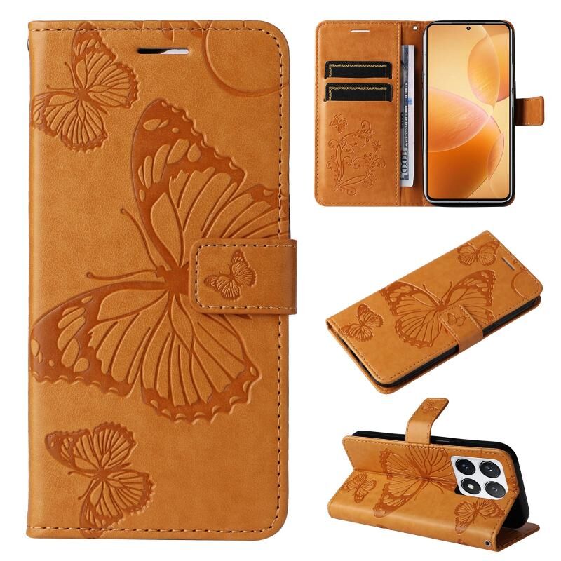 Για Xiaomi 14T Pro 3D πεταλούδα ανάγλυφο μοτίβο Flip δέρμα τηλέφωνο υπόθεση (κίτρινο)