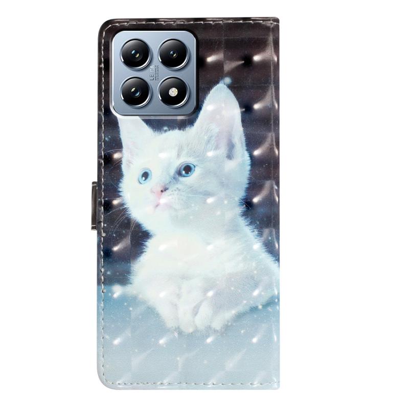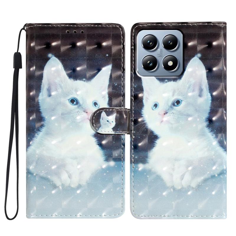 For Xiaomi 14T Pro 3D Pattern Leather Phone Case(White Cat)
