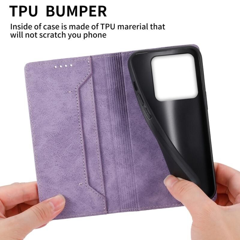 Θήκη τηλεφώνου δερμάτινη με μαγνητικό κλείσιμο και προστασία RFID για Xiaomi 14T Pro, μονόχρωμη (Μωβ)