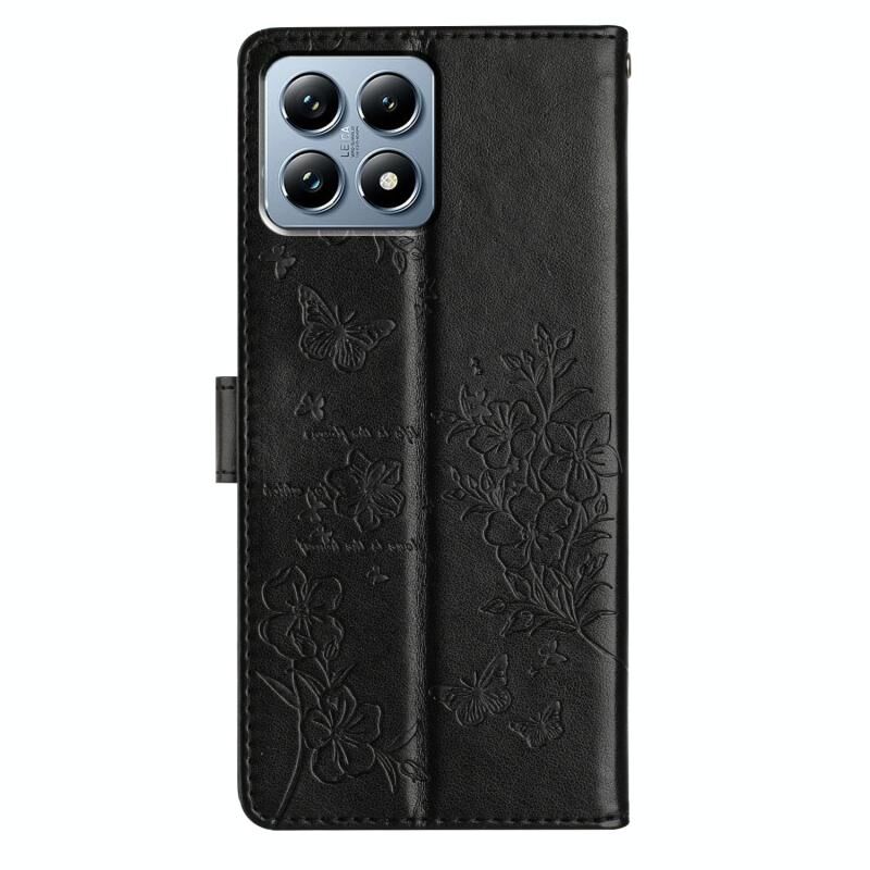 Θήκη τηλεφώνου Xiaomi 14T Pro από δέρμα με σχέδια πεταλούδες και λουλούδια (Χρυσό)