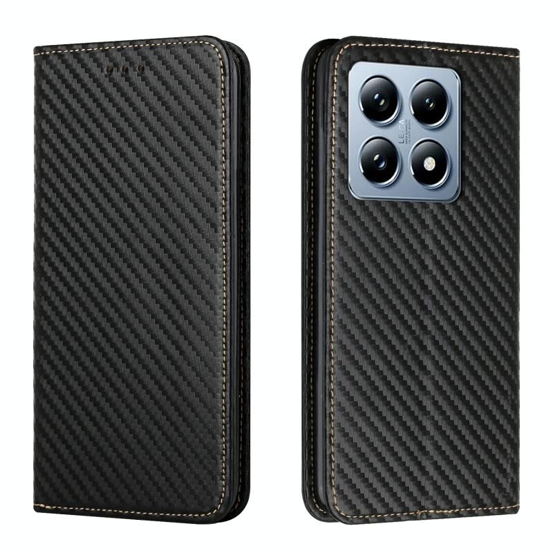 Για Xiaomi 14T Pro Carbon Fiber Texture Μαγνητική Flip δέρμα τηλέφωνο υπόθεση (Μαύρο)