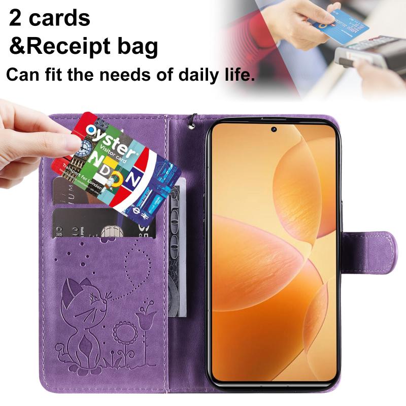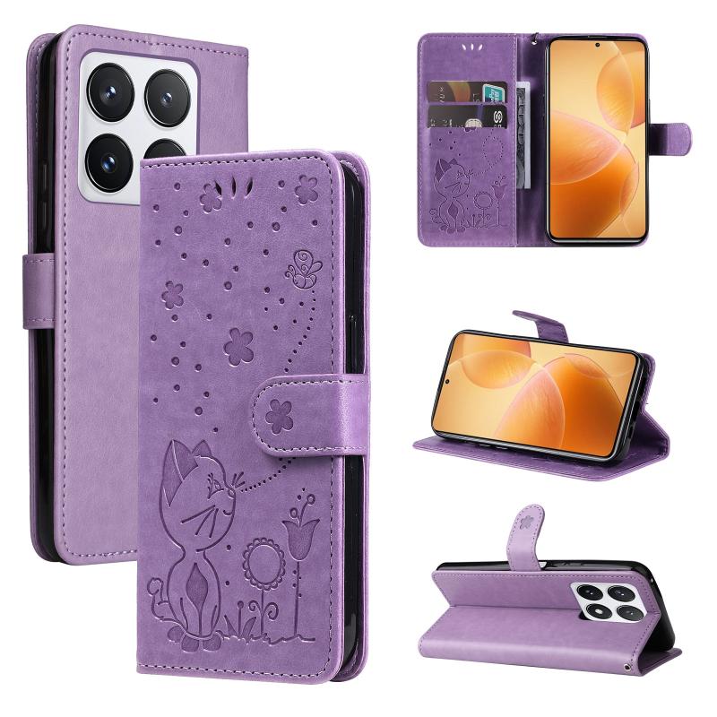 For Xiaomi 14T Pro Cat and Bee Embossed Flip Leather Phone Case(Purple)