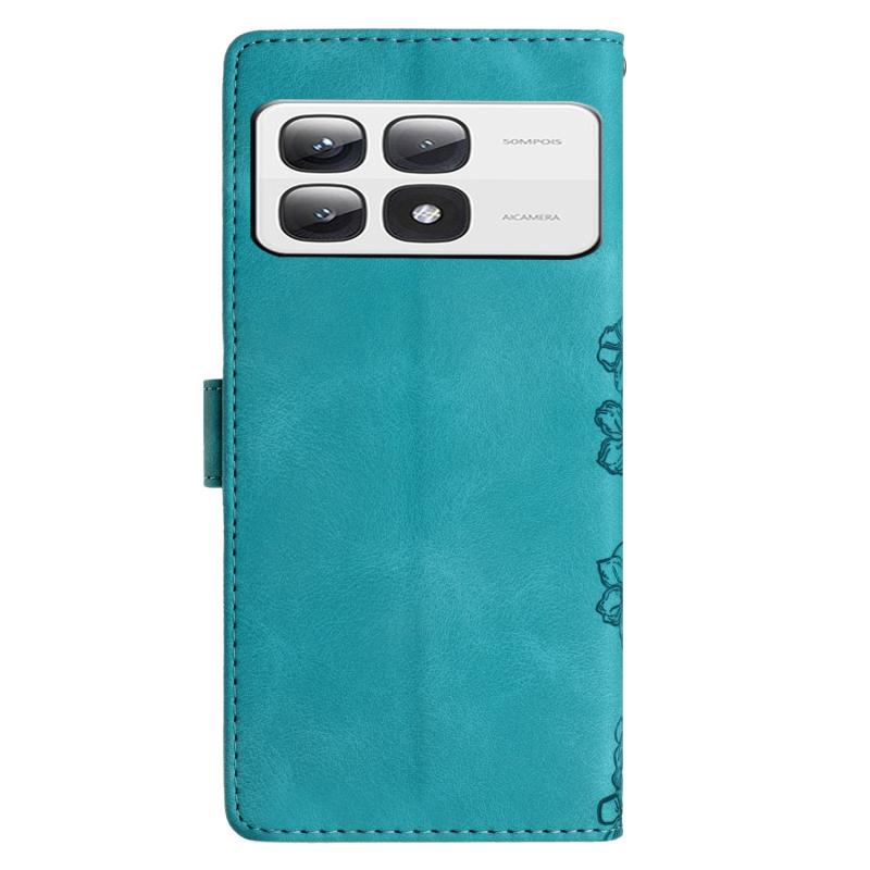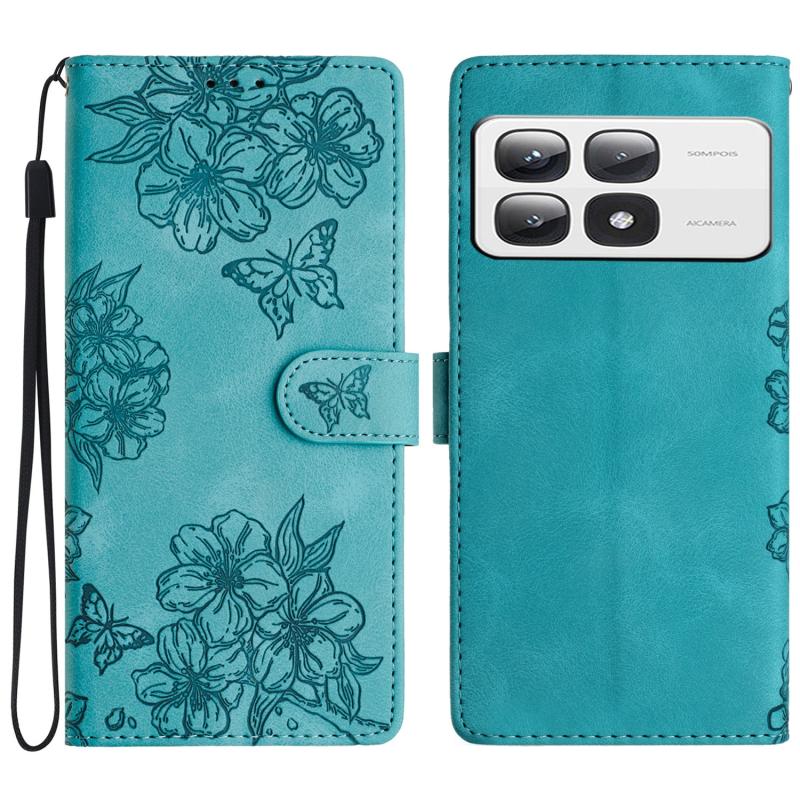 Θήκη τηλεφώνου Xiaomi 14T Pro με ανάγλυφο PU υφή δέρματος, σχέδιο κερασιού και πεταλούδας (Μωβ)