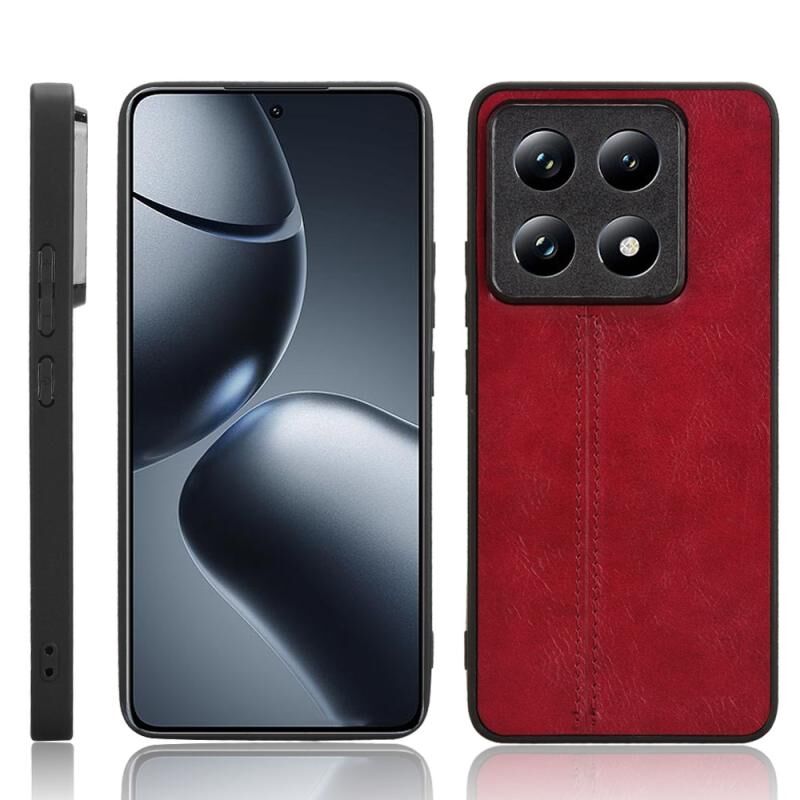 Για Xiaomi 14T Pro αγελάδα μοτίβο ραπτικής κάρτα τσάντα υπόθεση τηλεφώνου (κόκκινο)