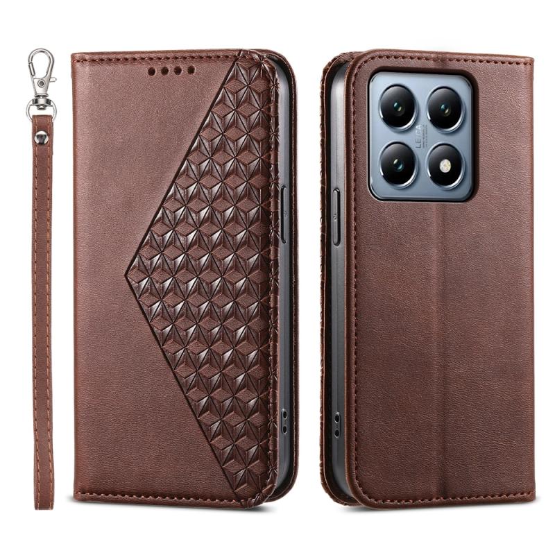 For Xiaomi 14T Pro Cubic Grid Calf Texture Magnetic Leather Phone Case(Brown)