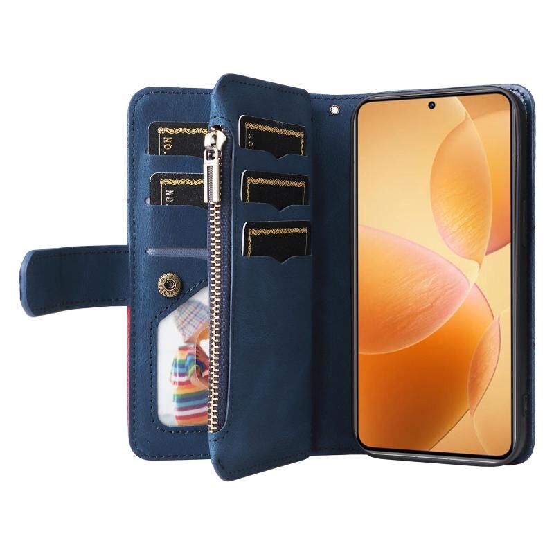 Για Xiaomi 14T Pro Διπλό χρώμα 9 υποδοχές καρτών φερμουάρ πορτοφόλι δερμάτινη θήκη τηλεφώνου (μπλε)