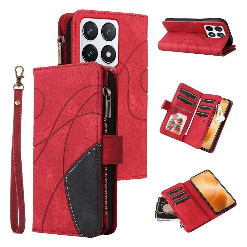 Για Xiaomi 14T Pro Διπλό χρώμα 9 υποδοχές καρτών φερμουάρ πορτοφόλι δερμάτινη θήκη τηλεφώνου (κόκκινο)