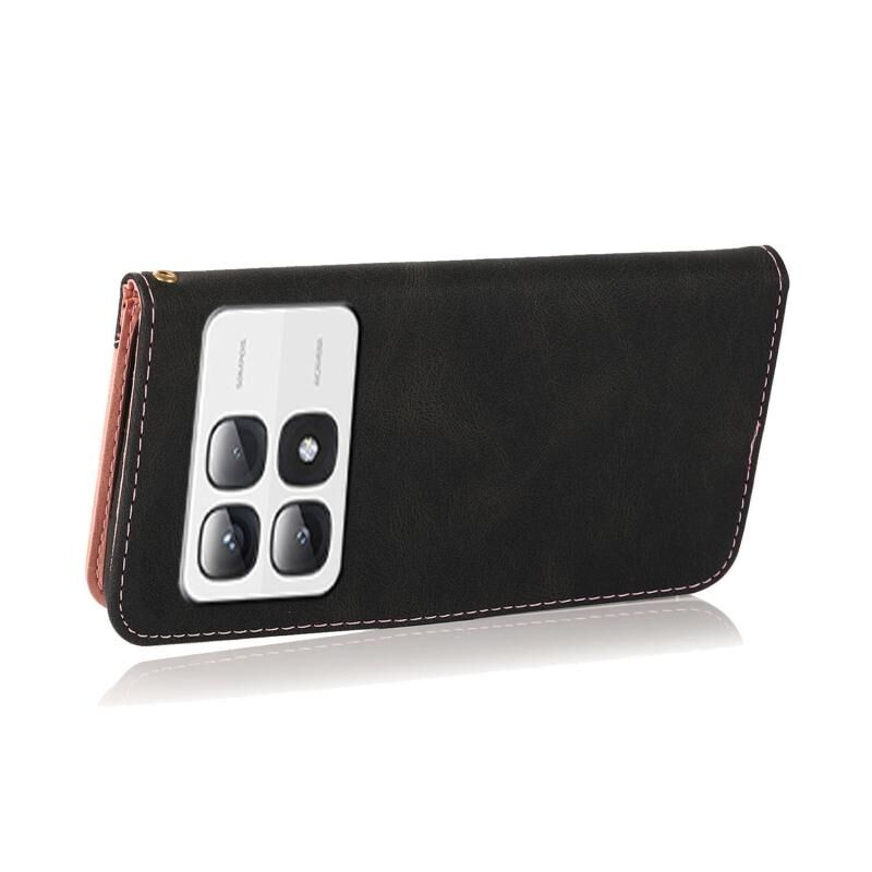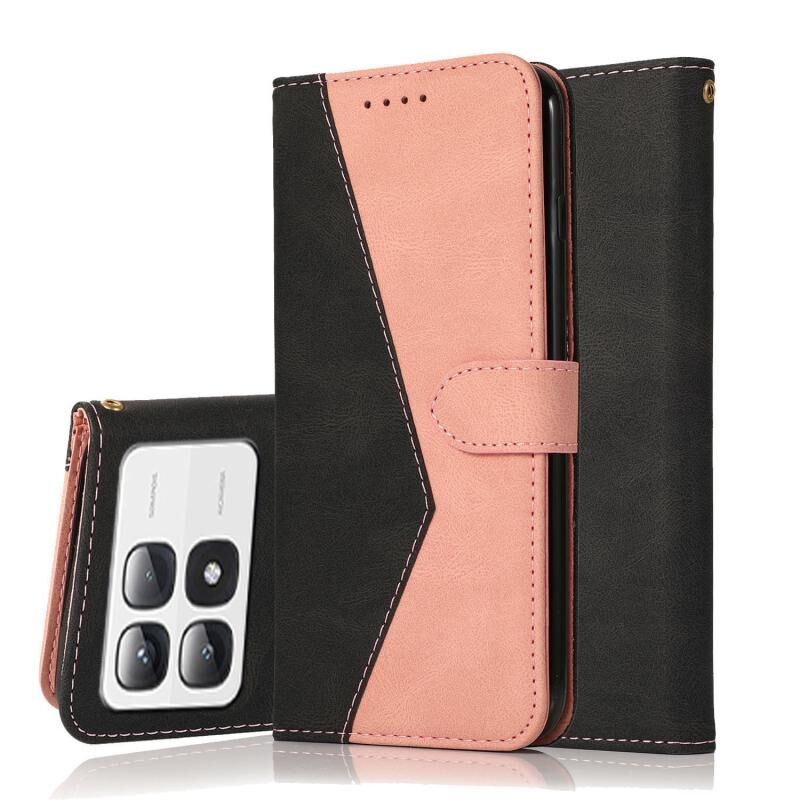Για Xiaomi 14T Pro Διπλό χρώμα ραφή δερμάτινη θήκη τηλεφώνου (μαύρο ροζ χρυσό)