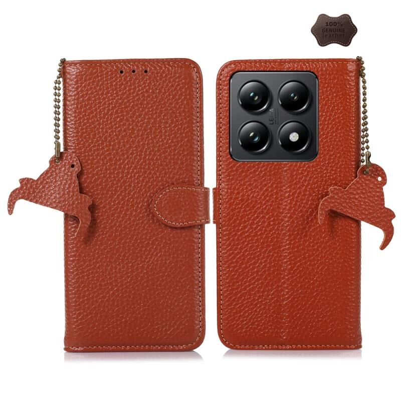 Θήκη τηλεφώνου από γνήσιο δέρμα Xiaomi 14T Pro με υφή λυτσί και προστασία RFID (Καφέ)