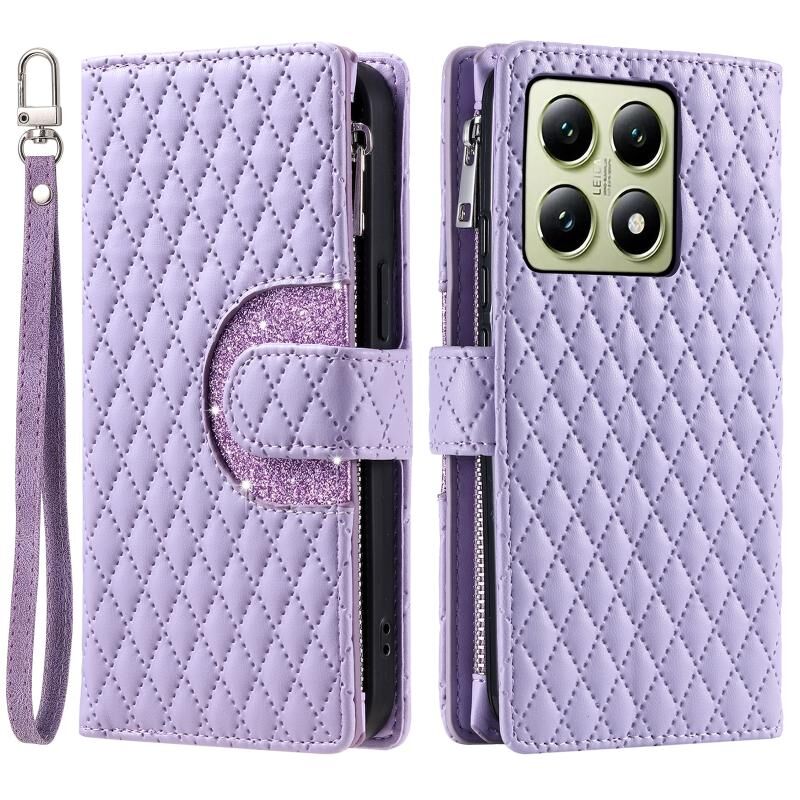 Για Xiaomi 14T Pro Glitter Lattice φερμουάρ πορτοφόλι δερμάτινη θήκη τηλεφώνου (μωβ)